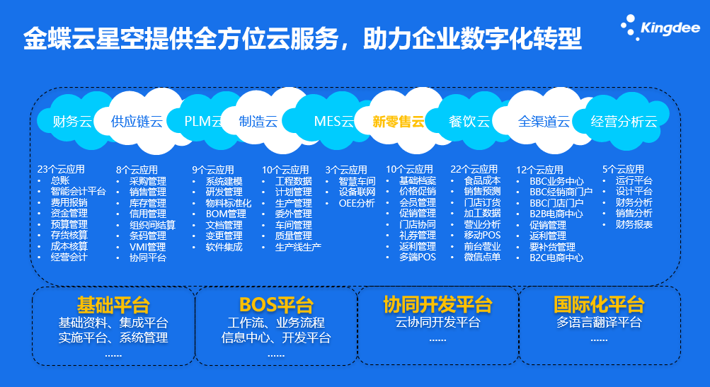 金蝶云·星空秉持流程驅(qū)動與角色驅(qū)動思想,通過數(shù)據(jù)和智能助力高成長型企業(yè)韌性成長,幫助企業(yè)從ERP資源計(jì)劃力向,EBC數(shù)字戰(zhàn)斗力轉(zhuǎn)變,實(shí)現(xiàn)數(shù)字化轉(zhuǎn)型以及管理重構(gòu)。